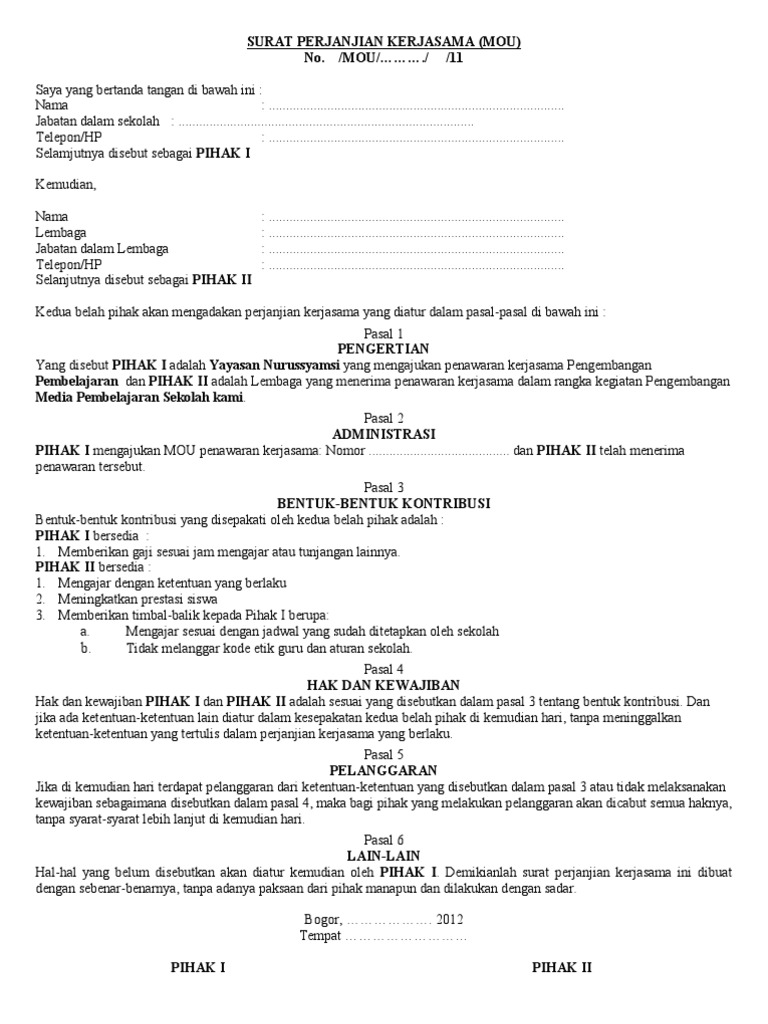 Contoh surat perjanjian kerja guru honorer kontrak kerja. Berikut ini adalah berkas contoh surat perjanjian kontrak kerja guru paud format microsoft word.
